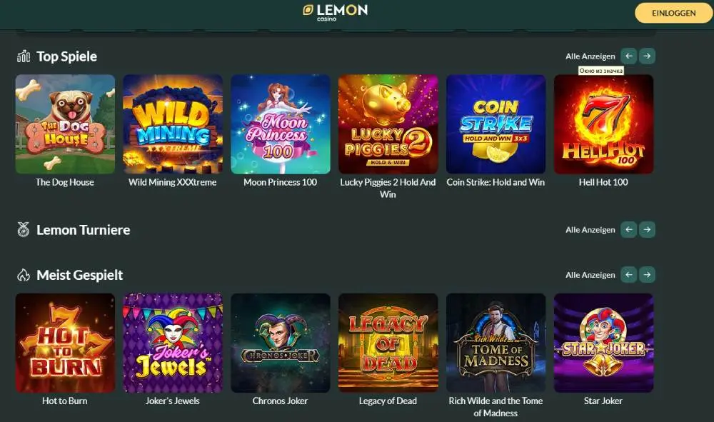 Lemon Casino lädt Spieler ein, an spannenden Turnieren, Aktionen und Missionen teilzunehmen. Das Casino veranstaltet regelmäßig thematische Wettbewerbe führender Anbieter, bei denen Benutzer um großzügige Preise konkurrieren können.
